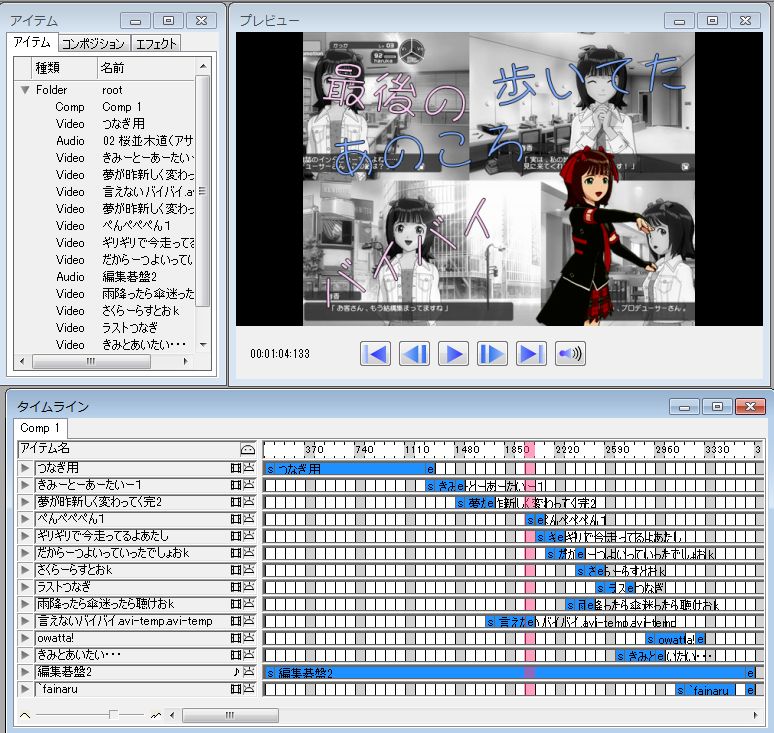 今回はもちろん映像編集、加工、音源切り貼りなど全ての作業をフリーソフトで済ませました。AEとか使ってる有名Pも多くいるわけですが底辺新参Pはやっぱりフリーで済ませるべきですしね。