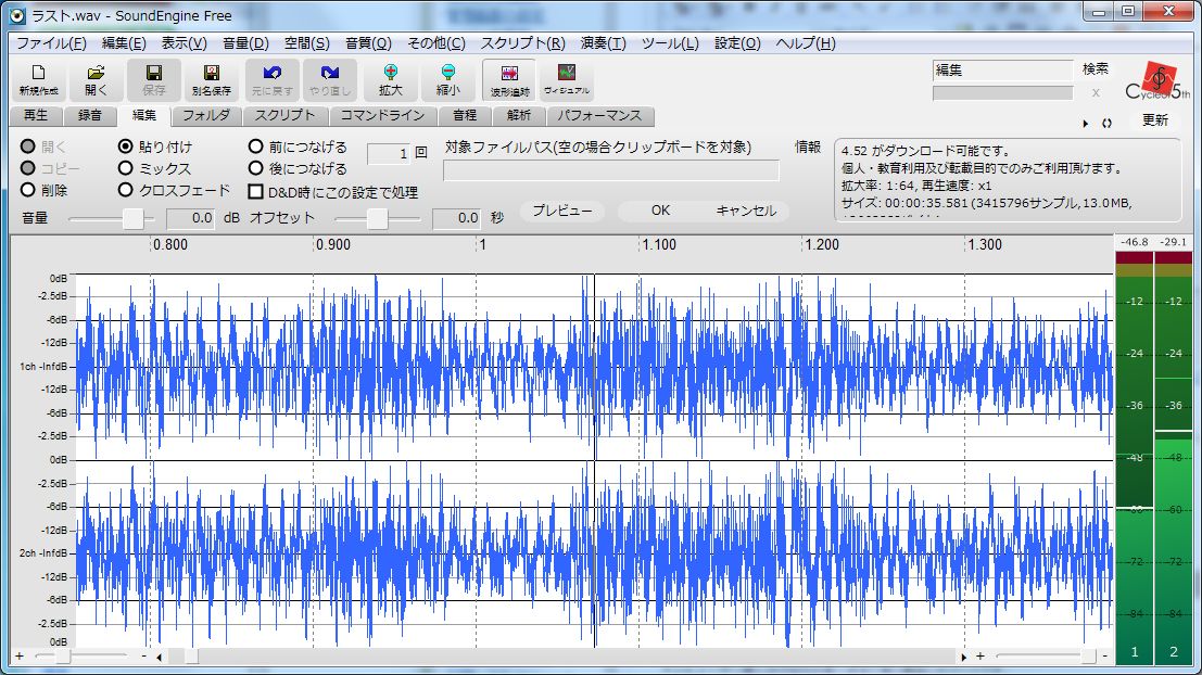 切り貼りや音源編集で非常に役に立ちました。歌ってみたなんかでこれ使ってる人も