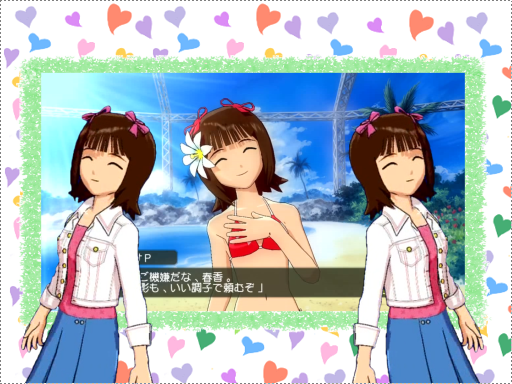 バックに写っている春香は胸に手をあてたポーズだけでつなぐ
